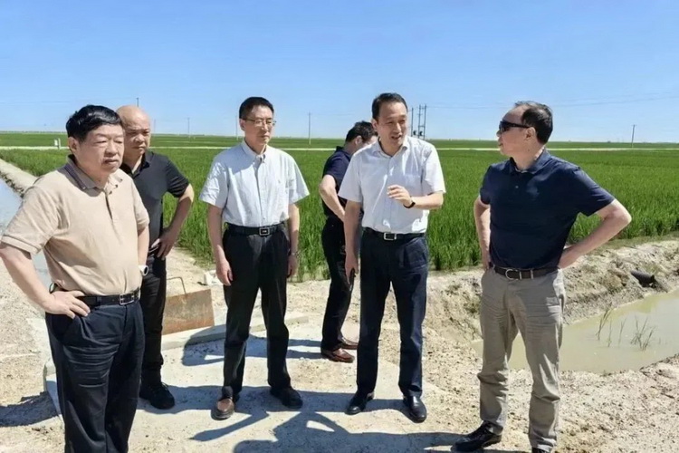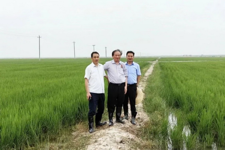这是沈其荣院士今年第三次到访吉林协联,当来到农场,看到通过改良后重度盐碱地上碧绿的水稻长势喜人,十分欣慰。他走进水稻田,仔细观察水田土壤的结构和肥力,现场指导盐碱地改良、种植及牛粪秸秆发酵等工作,并就相关技术难题与农场技术人员进行热烈讨论。