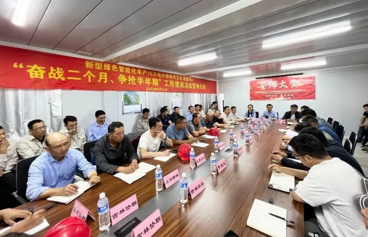 8月12日上午,吉林协联举行“奋战二个月,争抢半年期”新型绿色智能化年产15万吨柠檬酸项目及配套项目工程建设决战誓师大会。镇赉经济开发区副主任王伟、镇赉县项目服务中心主任王影、柠檬酸项目及公用设施项目等各参建单位负责人及项目经理、吉林协联公司领导及各专业人员参加了誓师大会。活动由吉林协联党总支书记、副总经理裴亚秋主持。