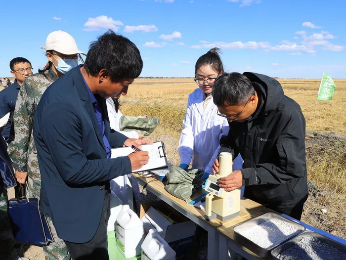 为推进项目高质高效完成,吉林省农业科学院水稻研究所与吉林协联联合攻关,种植吉林省农业科学院水稻研究所选育的吉粳129水稻品种,构建应用了基于柠檬酸石膏、柠檬酸降碱剂和生物有机肥等苏打盐碱土全程绿色改良技术,推动盐碱地治理从单一治理向系统治理、从短期效益向长期可持续发展转变。