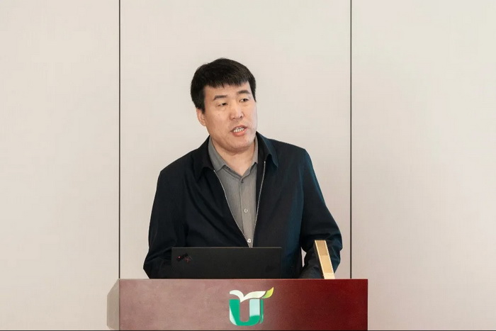吉林省农业科学院副院长牟忠生致辞,他表示,吉林省农业科学院已在镇赉盐碱地深耕40余年,拥有丰富的盐碱地改良与利用经验和技术积累。此次与吉林协联共同建立吉林省苏打盐碱地综合利用产业研究院,将积极发挥双方优势,共同攻克苏打盐碱地治理难题,探索出一条因地制宜、具有本土特色的盐碱地治理利用路线,充分挖掘盐碱地综合利用潜力,推动我省盐碱地产业高质量发展,为保障国家粮食安全作出吉林贡献。