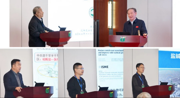 学术报告会上,陈温福、沈其荣院士作大会主旨报告,随后,吉林省农业科学院水稻研究所所长、农业农村部盐碱土改良与利用(东北内陆盐碱地)重点实验室主任、吉林省苏打盐碱地综合利用产业研究院院长侯立刚、南京农业大学资源与环境学院张楠、吉林省农业科学院农业资源与环境研究所高玉山分别作学术报告,大家对盐碱地综合利用与产业融合发展进行了热烈的交流与研讨。